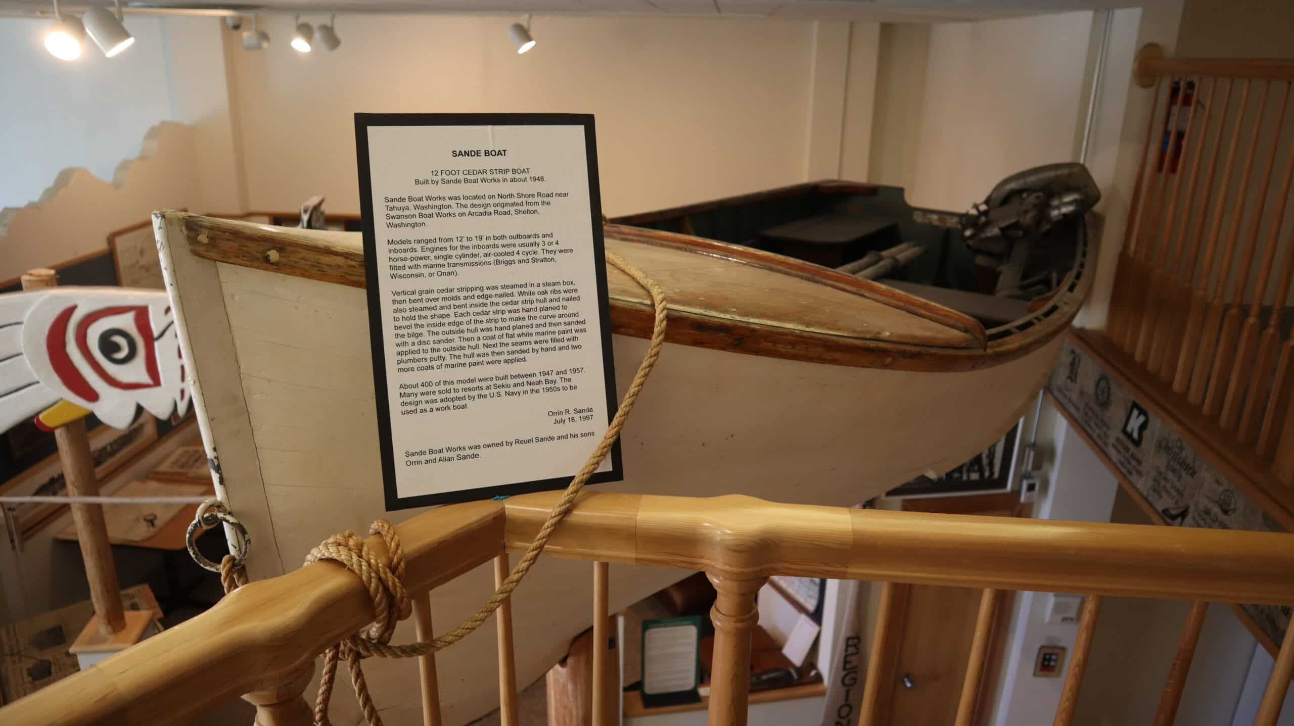 “I think our most relevant area for maritime history is the Mosquito Fleet interactive kiosk, which also has some ferry and maritime items around it. If you follow the timeline, we’ve also got some maritime history as it pertains to the logging industry. We also have a new exhibit that is going to open next month in our back gallery, Trade of the Northwest, being put on by the JayHawk Foundation… on indigenous trade, before and after contact, which was mostly done by water.”