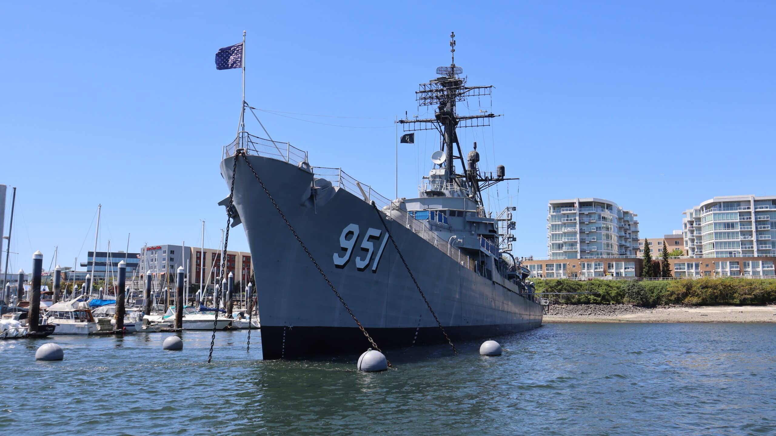 After your visit to the USS Turner Joy, walk down the public marina towards the breakwater dock for a great view of the bow of the Turner-Joy and a close-up visit with the tugboat Dominion.