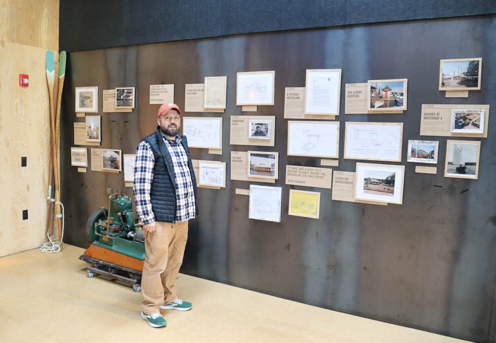 In 1976, after the collapse of several regional boatbuilders, founders Dick and Colleen Wagner began accumulating a collection of boats beside their floating home under the Aurora Bridge. Now, CWB makes its home on the southern shore of the lake. Boats of different shapes and sizes hang from the ceiling over the lobby of the new Wagner Education Center, and the floating boathouses and docks that served as the home of the CWB for decades before the Center was built are on the water.