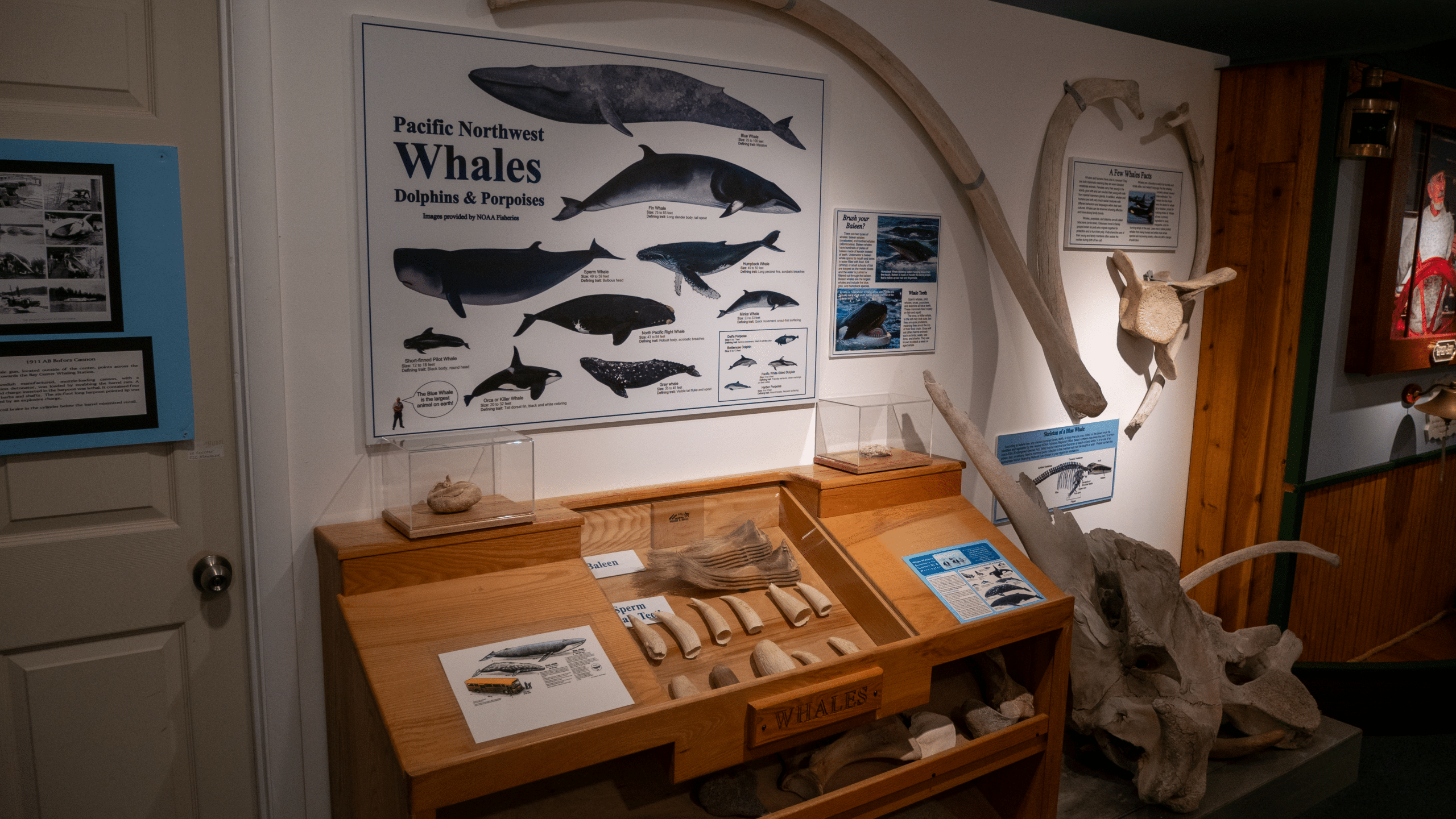 Among the highest goals of the Center is to educate the public about Washington’s coastline and its host city, Ocean Shores. With five permanent galleries and many more outdoor exhibits and trails, the Center displays the natural and cultural history of the region through many different types of media. Both hands-on and readable interpretive displays help the Center to share a diverse range of stories about the coast, both today and throughout history. The opportunities to touch and experience maritime history are plentiful. Kids can participate in scientific investigations, measure themselves against a moose shadow, pilot a container ship through a storm, and feel whale bones and baleen.