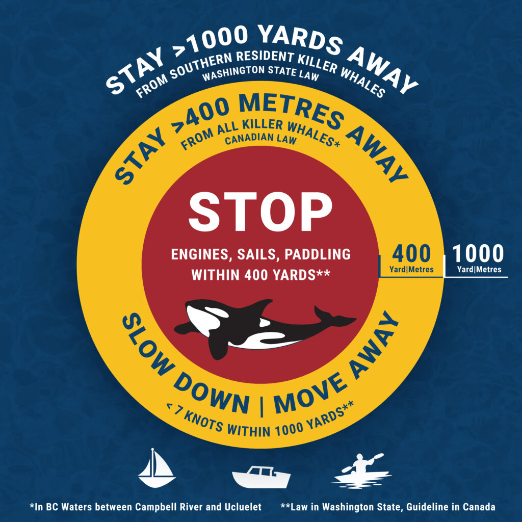 - Boaters must stay 200 yards from other killer whales (Bigg’s/Transient killer whales).