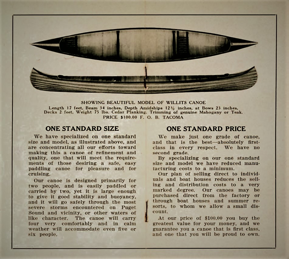 In 1939, Louise and Bob Lynd, writers from Tacoma, retraced a section of Lewis and Clark’s journey on the Missouri River, then continued down the Mississippi to New Orleans in a Willits canoe given to them by Henry Foss, a child of Tacoma maritime entrepreneurs Thea and Andrew Foss. Their 3500-mile voyage was chronicled in more than 100 articles published almost daily by the Tacoma Times as part of the Washington State Jubilee. In the Depression years, you could buy a canoe from Earl and Floyd for $80. Earl kept the waiting list, and some people who the brothers felt didn’t deserve a boat just never moved up from the bottom.