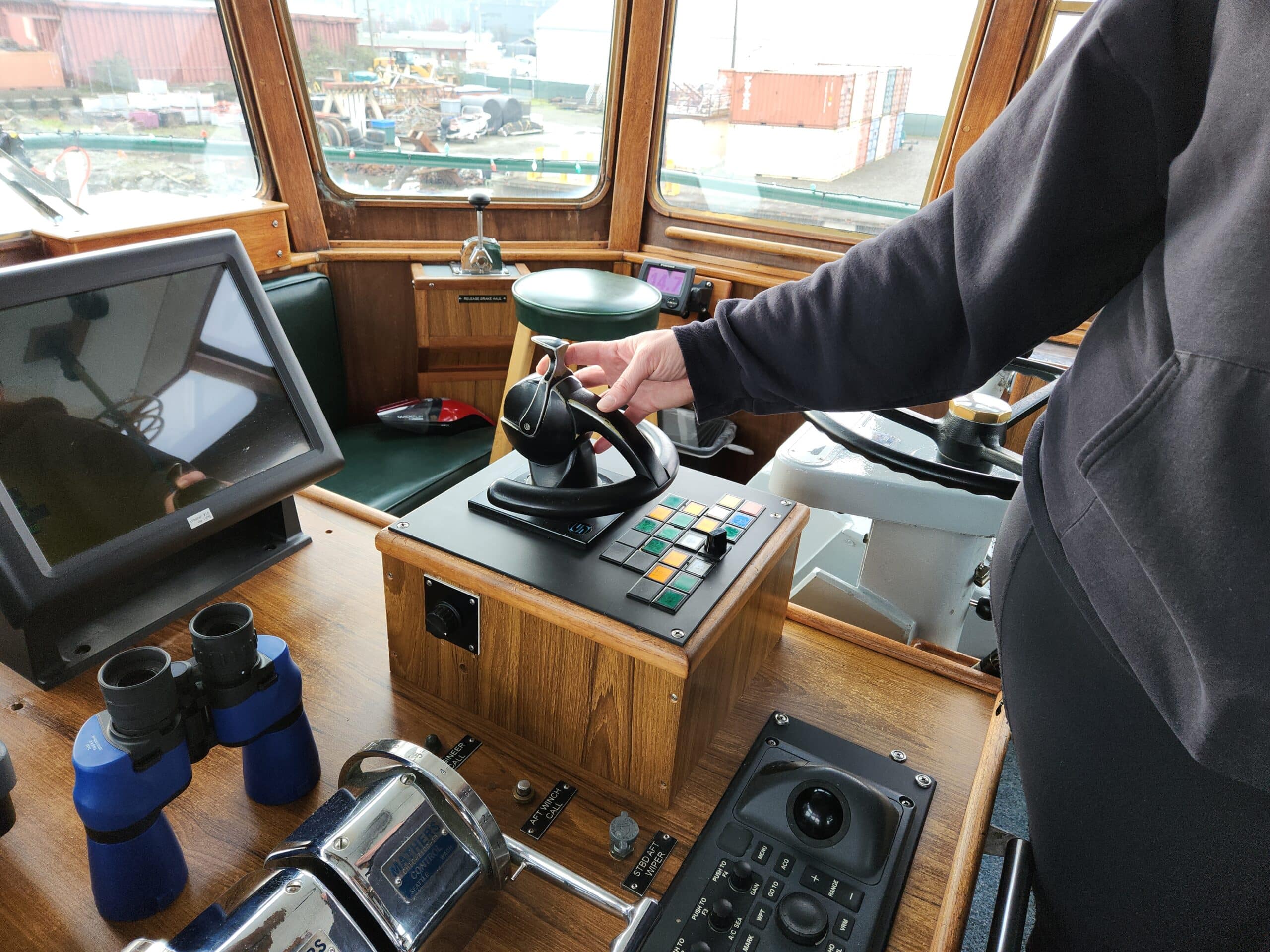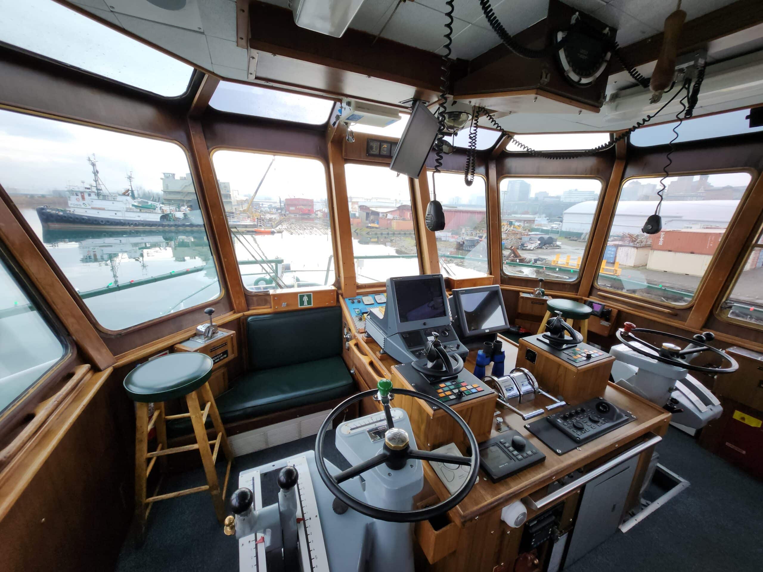The Wedell Foss is unique in her maneuverability and design. She is equipped with two main “voith drive” engines with vertical propellers and a third “Z-drive” propeller that can rotate 360 degrees. Katrina says, “It’s extremely maneuverable. Pretty badass in my opinion. One of the funnest boats I’ve ever run.” The third engine, which is an oddity compared to most tugboats, provides a unique boost of power. “A lot of tugboats, you need some forward momentum for steerage. This boat, you don’t need any.”