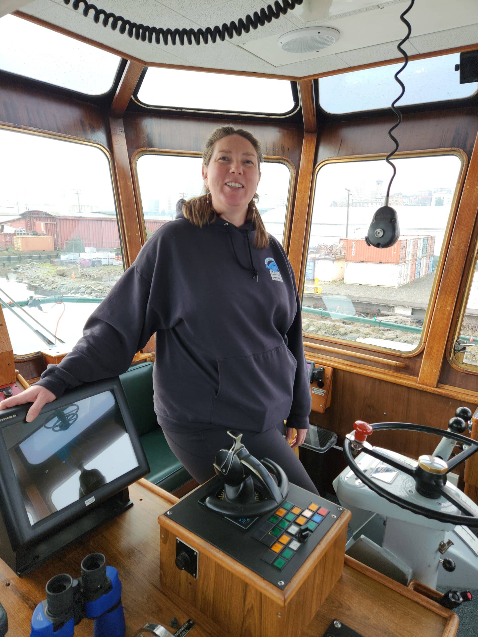 A fourth-generation tugboater, Katrina has worked on board ships like the Wedell Foss for most of her life. “After working for my dad in high school, I just loved the physical labor aspect of it,” she said. “I always knew I wanted to go into tugboats, so I was just preparing myself to run my dad’s company.”