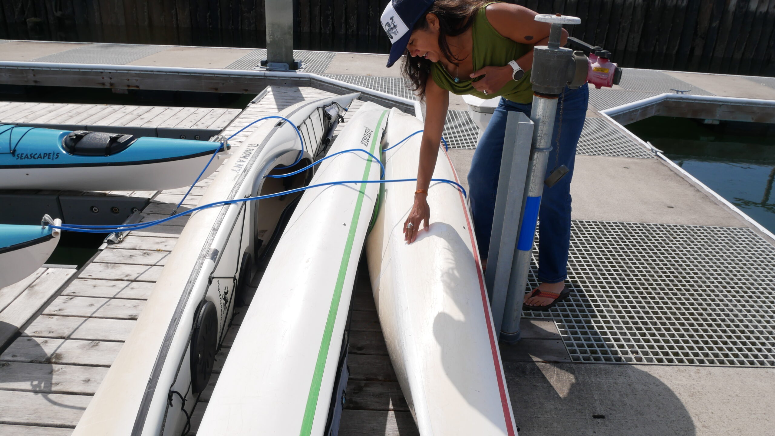 Over the years, Megan and Erik have found distinct roles within the business. While Erik manages the physical aspects like kayak repairs and on-the-water safety, Megan oversees the operations from her office and docks in Anacortes. “My role became sort of bossing everyone around, managing the office, dealing with the guests, calls, emails, and requests, dealing with the guides, managing the guides, kind of just keeping the whole system moving,” she said.