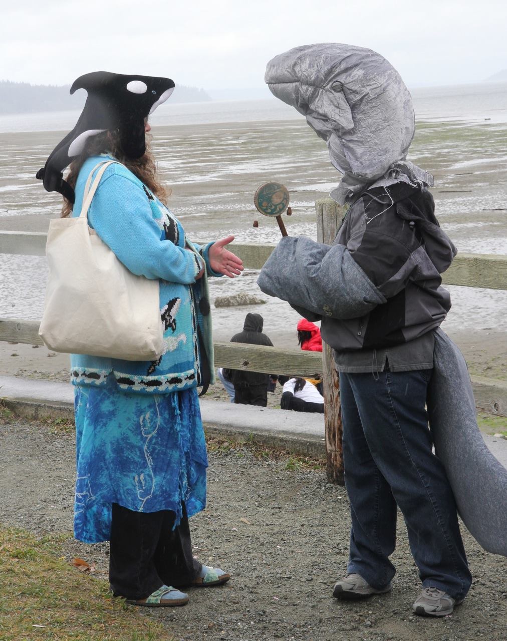 Langley was a prime location for the Whale Center because gray whales (known colloquially as Sounders) will get very close to land and feed on ghost shrimp that congregate “like a buffet” near shore. Sightings are almost daily January through May. Susan is particularly grateful to the town of Langley for embracing the Langley Whale Center and Orca Network.